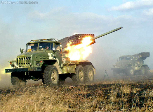 BM-21 firing 122 mm rockets
